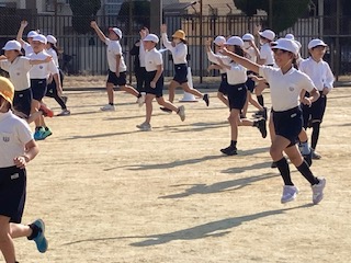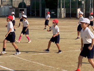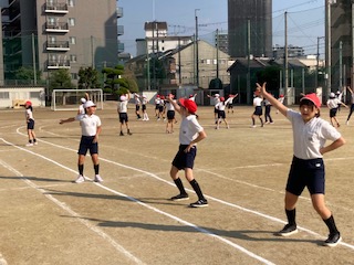 久しぶりに揃った4年生。団体競技の前に踊るダンスを仕上げていきました。