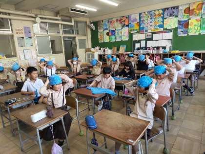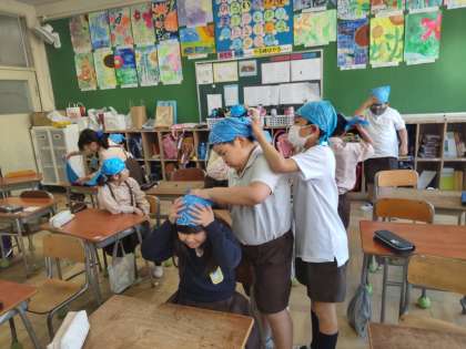 バンダナをつける練習もしています。