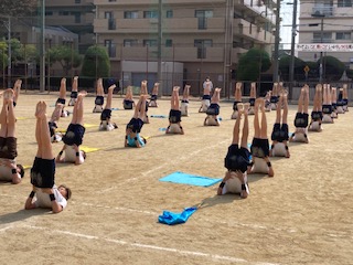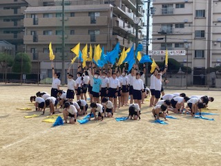 最後の練習です。フラッグと組体操の組み合わせが見事です!