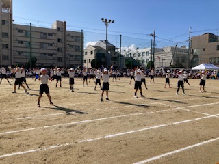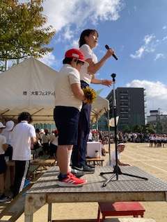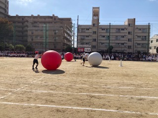 元気いっぱい踊り、二人で協力して大玉を運びました!