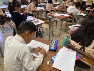 かけ算の練習問題をたくさん解いています!
