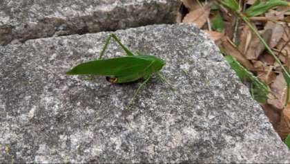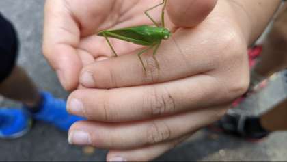 クツワムシという珍しい虫を見つけた子や