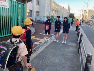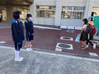 本校の卒業生で旭陽中学の3年生が、職場体験に来ています。今日で2日目です。朝子どもたちを明るく出迎えました。赤い羽根の募金も手伝いました。
