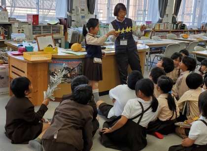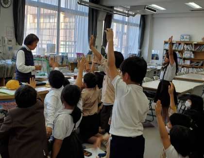 学校司書のM先生が来てくださる木曜日は、時間の始めに紙芝居の読み聞かせや手品をしてくださいます。
