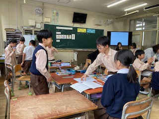 ボディパーカッションを体験しました。グループで、体のどこの部位をどんなふうに打ったら良いか相談しました。最後は動画に合わせて自由にボディパーカッションを楽しみました。