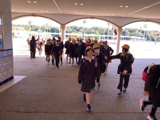 スペイン村につきました。集会写真を撮り、今から班ごとに回ります。