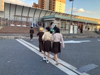 京田辺PAでトイレ休憩を済ませ、学校に向かって出発しました。道が混んでいなければ、50分くらいで到着です。