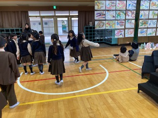 作品を講堂に運びました。すてきな気球がいっぱいです!