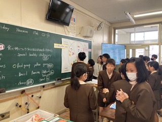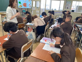 CネットのE先生におすすめのカレーを紹介します。カレーに入れる食材の名前や、それの栄養素などを友達同士で聞いたり話したりする活動をしました。食育で学習した、赤・黄色・緑など、どのグループに入るかも答えて黒板に掲示しました。