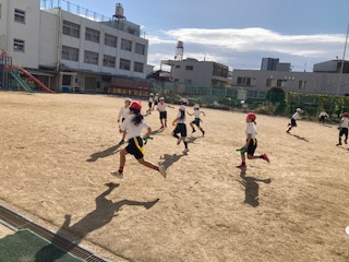 しつぼとりをしました。今日は暖かく、その後ドッジボールをすると、汗をかくくらいよく動きました。