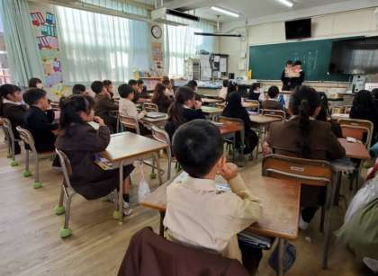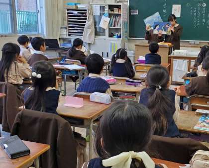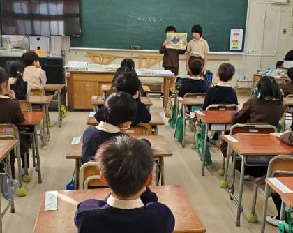 図書委員会が、低学年の教室に行き、紙芝居の読み聞かせを行いました。紙芝居が始まると朝の準備をしていても手を止めて、お話の世界にひたっていました。
