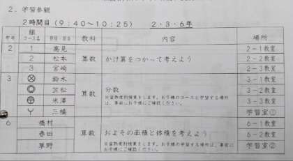 ※3・6年生の算数科の学習は、自分の教室ではなく、違う教室に移動している児童がいますので、ご注意ください。