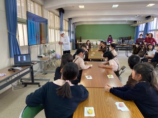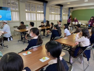 国語科で「和の文化を受け継ごう−和菓子を探る−」を学習しました。それを受けて、実際に茶席を設えて和菓子を体験しました。