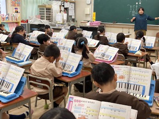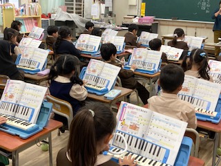 鍵盤ハーモニカの練習をしました。一人ずつテストもしました。