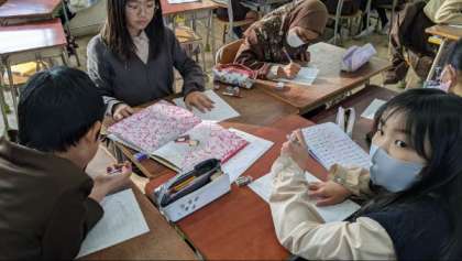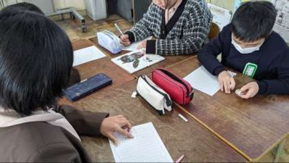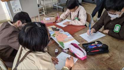 オーサービジット事業で本校に来ていただくくどうかずしさんの絵本を読んで感じたことを交流していました。