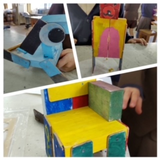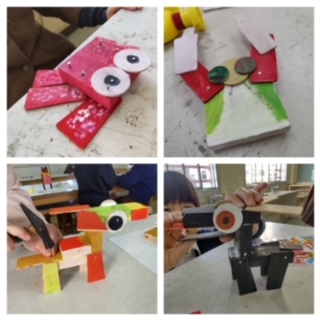 初めてかなづちを使って、くぎを打ちこんでいきました。どれもオンリーワン!