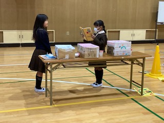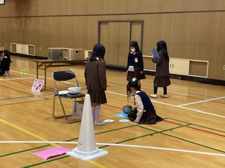1年生を手作りおもちゃのお店に招待して遊びます。今日は、リハーサルをしていました。うまく伝わるように、何度も練習をしました。