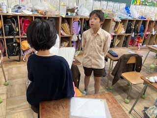 1年生に手作りおもちゃの説明をするので、練習をしました。