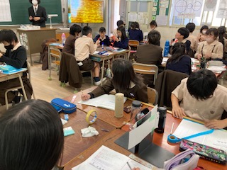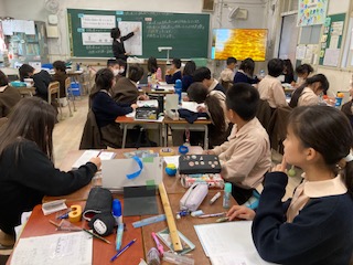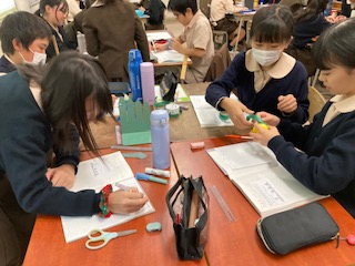 身の回りにある物の中から、水筒など円柱形のものを持ち寄り、円周と直径を調べました。そして、円周が直径の何倍になっているか計算しました。小数第2位までで表すと、大体3.14となることがわかりました。