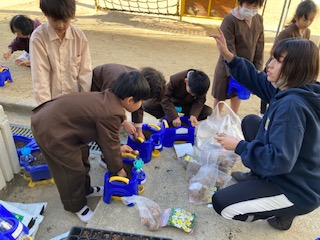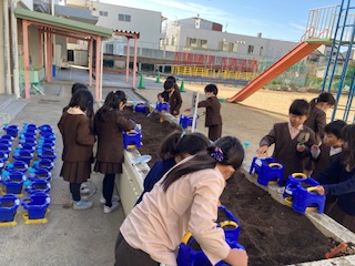 すいせんの球根を植えました。卒業式の時にちょうど咲いてくれると嬉しいですね。