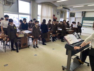 卒業式に向けて「大阪市歌」を練習しました。これから音楽の時間の初めに練習をしていきます。