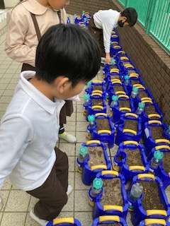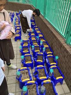 12月に植えたスイセンの芽が少し出てきています。土が乾いたら水やりをしています。