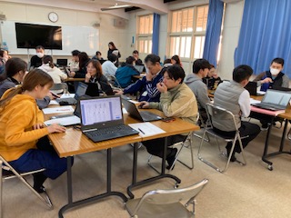 放課後、1年生の教材をもとに、子ども達が書いた文章の評価について研修をしました。その単元でどんな力をつけたいのか、それが達成できたかどうかをみとるための評価基準について、また、できていない場合は、どんな手立てをとるのかなどを共通理解しました。