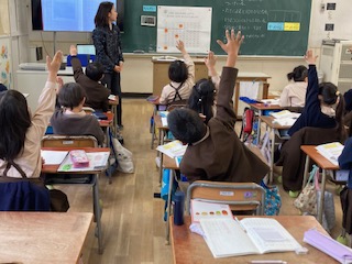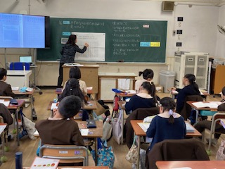 1から100までの数の表を見ながら、規則を見つけていきました。最後は、先生がかくした数を、規則から考え当てました。