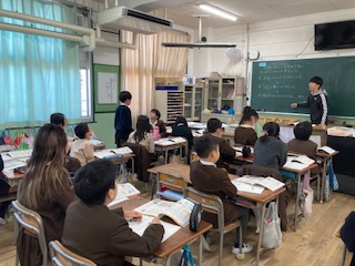 堺の伝統工芸品、包丁について学習しています。店頭に並ぶまでどんな流れで作られているのか、なぜ一人で全て作らないのかなどの疑問を解決していきました。