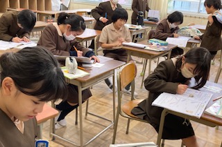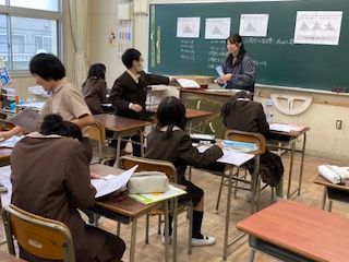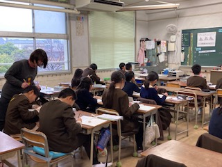 三角形の面積の求め方の公式を使って練習問題をしました。高さや底辺がわかりにくい時にはどうすれば良いかも見つけていきました。