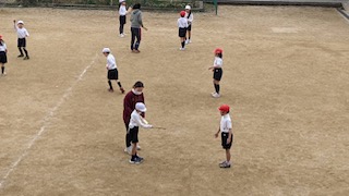 羽根付きをしました。すぐに羽根が落ちても、あきらめず頑張って続けようとしています。