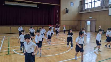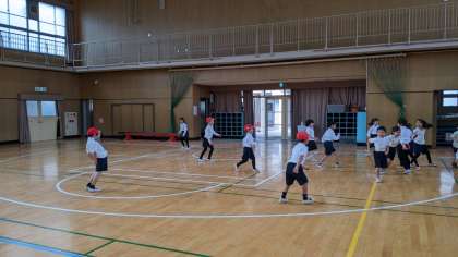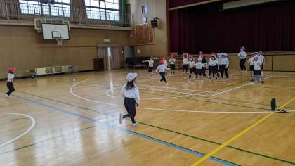 しっぽ取り鬼ごっことリレーをしました。寒くても元気いっぱいです!