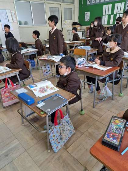 説明文の文章構成は、「はじめ」「中」「おわり」となっていることを復習し、この説明文ではどうなっているか考えました。「おわり」がないことに気づいた子ども達は、まとめの文(筆者が伝えたいこと)はどこかな?と探しました。ペアやグループで相談して見つけました。よく考えて、発表しています。