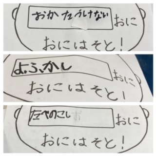 牛乳パックを使ってオニを作りました。その下に自分の中にあるオニを追い出したいと