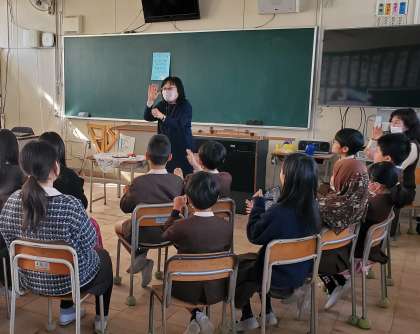 4年生は、若返りの水」や「エパミナンダス」などのお話でした。主人公の様子に子どもたちは大笑い!また、「若返りの水のお話」ではその水がほしいと担任の先生も思って聞いていたようです!