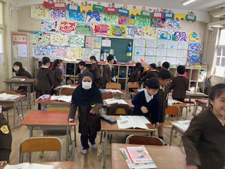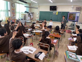 オオアリクイとコチドリの子どもの守り方の違いを読みました。オオアリクイでは同じ色の服の子同士がくっついた場合とそうでない時の見え方の違いに「敵の目をごまかとている。」という意味がわかりました。またコチドリの親になってみて、教科書本文の「目をそらす」という意味を掴むこともできました。