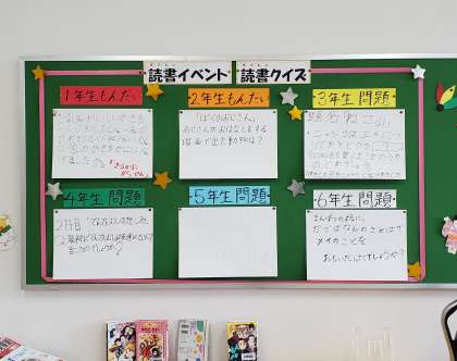 各学年が、国語科で並行読書してきた本の中からクイズを作っています。