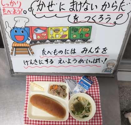 今日は、豚肉とごぼうの煮もの、なにわうどん、棒チーズ、黒糖パン、牛乳でした。