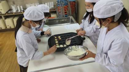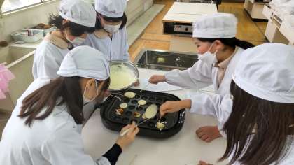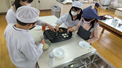 今年度最後のクラブでは、リクエストの多かったベビーカステラをたこ焼き器で作りました。大阪の子どもらしく上手に丸い形を竹串で作っていました。