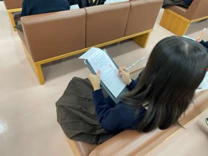 説明を聞いたり動画を観たりして、クイズに答えています。その他、初めて知った事などをメモしています。