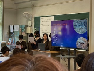 生物多様性を考え、大宮小学校のビオトープについての提案などをまとめたものを発表しました。