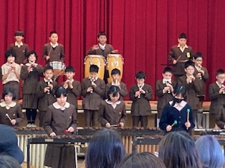 続いて講堂に移動して、練習してきた合唱、合奏を披露しました。