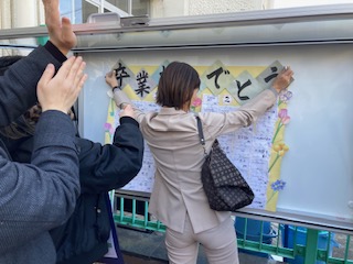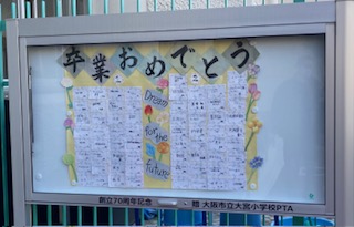 PTAの役員、実行委員の皆さんが、6年生が書いたメッセージをきれいにレイアウトして、玄関に飾ってくださいました。一人一人の将来の夢が書いてあります。