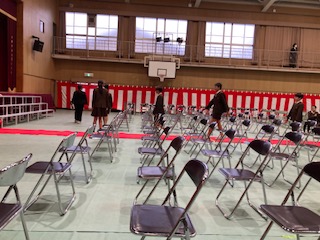 本番通り、9時半スタートで卒業式の練習を行いました。