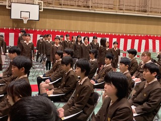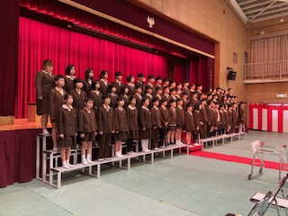 呼びかけの言葉は、自分たちがやってきたことの思い出をたくさん入れて作っています。5年生もしっかりと聞いたり、歌ったりして6年生の姿から学んでいます。