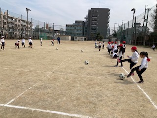 本校グランドでは、なわとびを第2グラウンドでは、ボール蹴り運動をしました。なわとびのなわをくくるのも上手になってきました。
