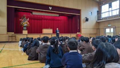 新しく転入してきた児童の紹介と校長先生のお話がありました。