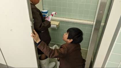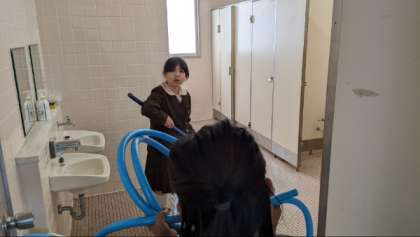 新しいメンバーと新しい担当場所で丁寧に掃除をしていました。