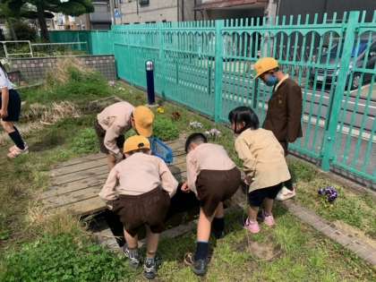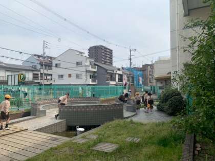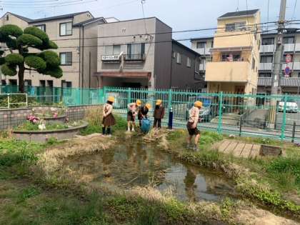 休み時間に、ビオトープに観察に来ている子どもたちもいます。