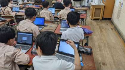 タブレット端末を活用する学習、理科、社会の学習をしていました。